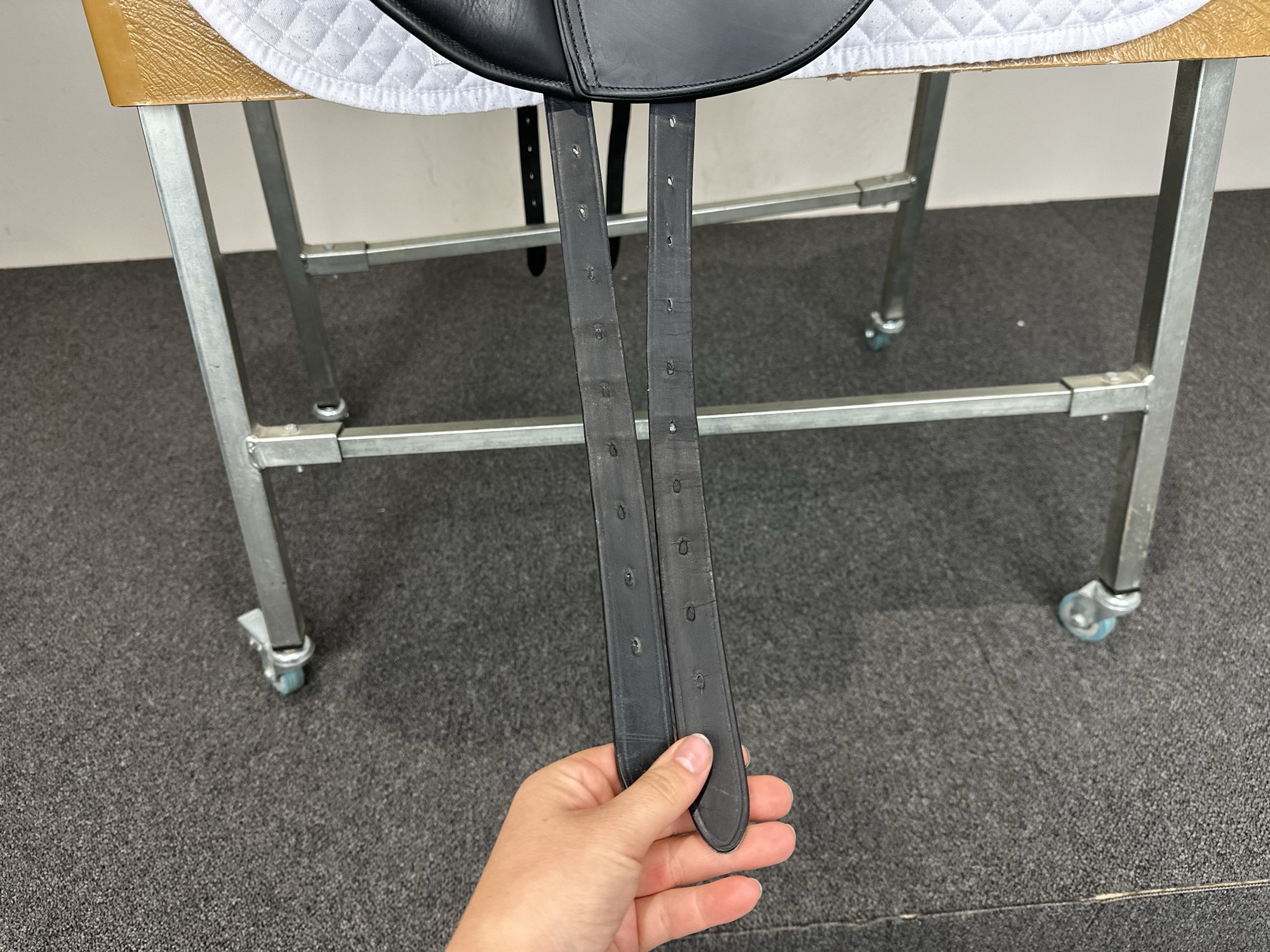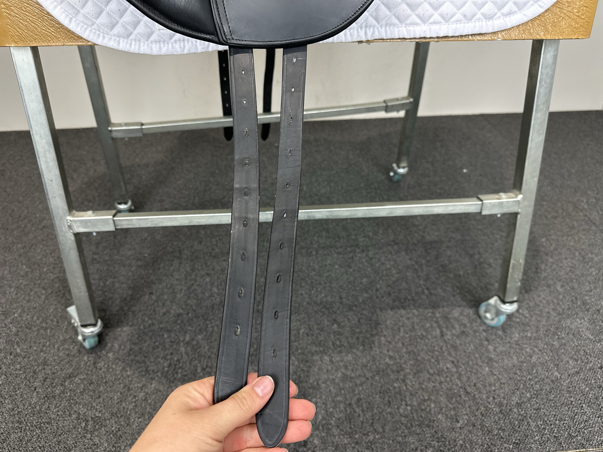 Keep your saddle at room temperature, away from direct heat or damp conditions. Always store it on a saddle rack or stand to preserve its shape.