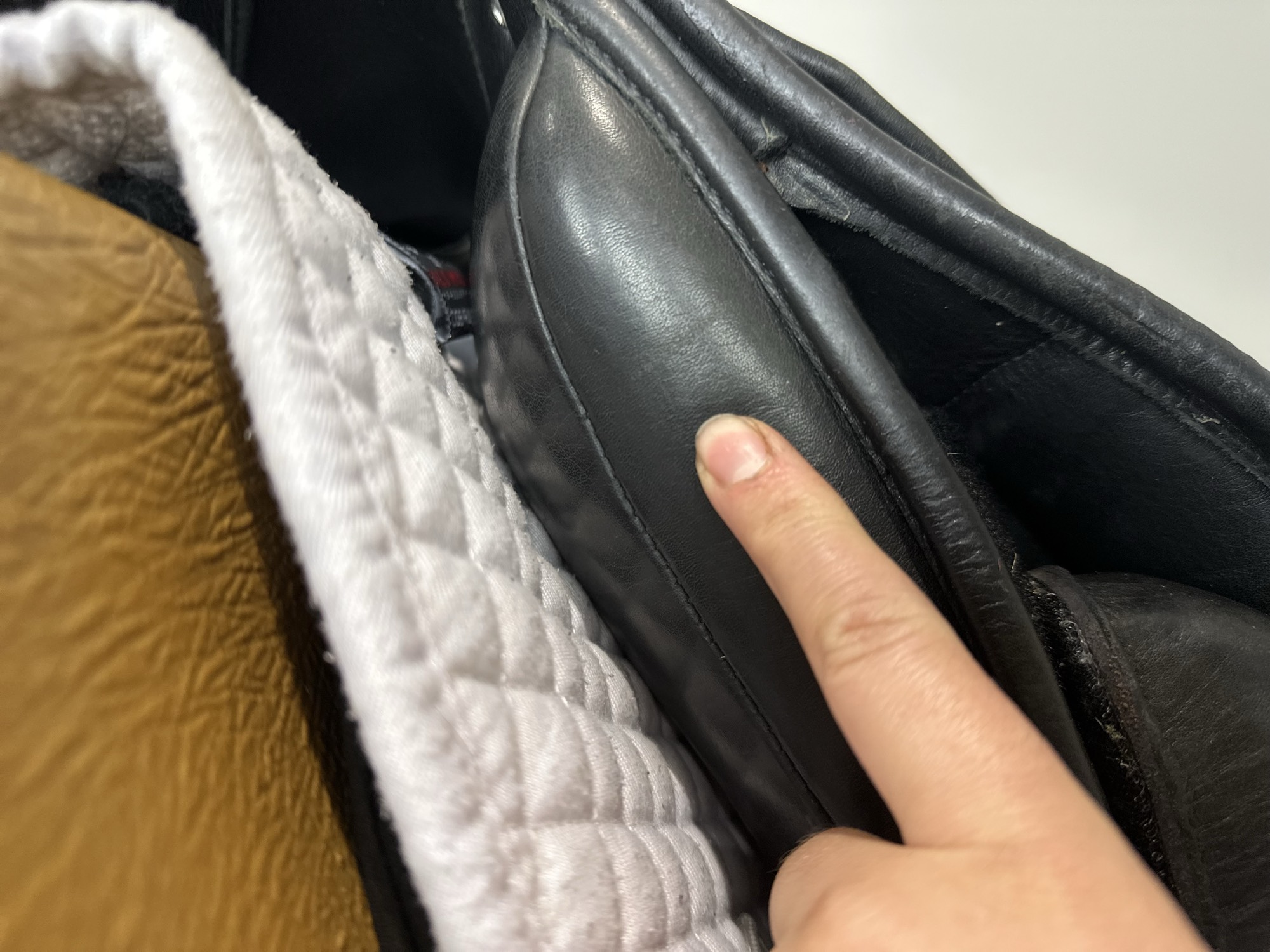 Friction rub areas, such as where the stirrup leathers rub on the Flap.