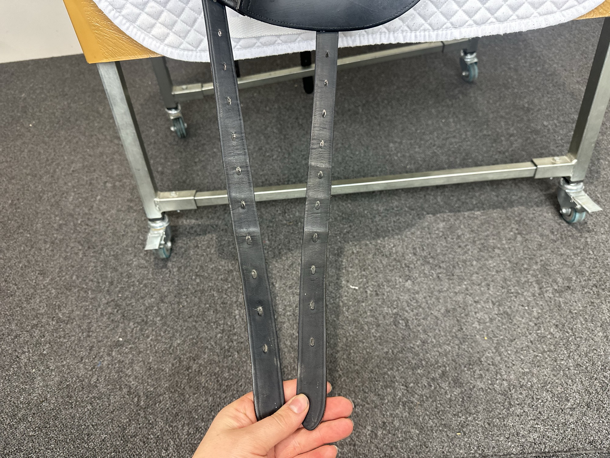 Keep your saddle at room temperature, away from direct heat or damp conditions. Always store it on a saddle rack or stand to preserve its shape.