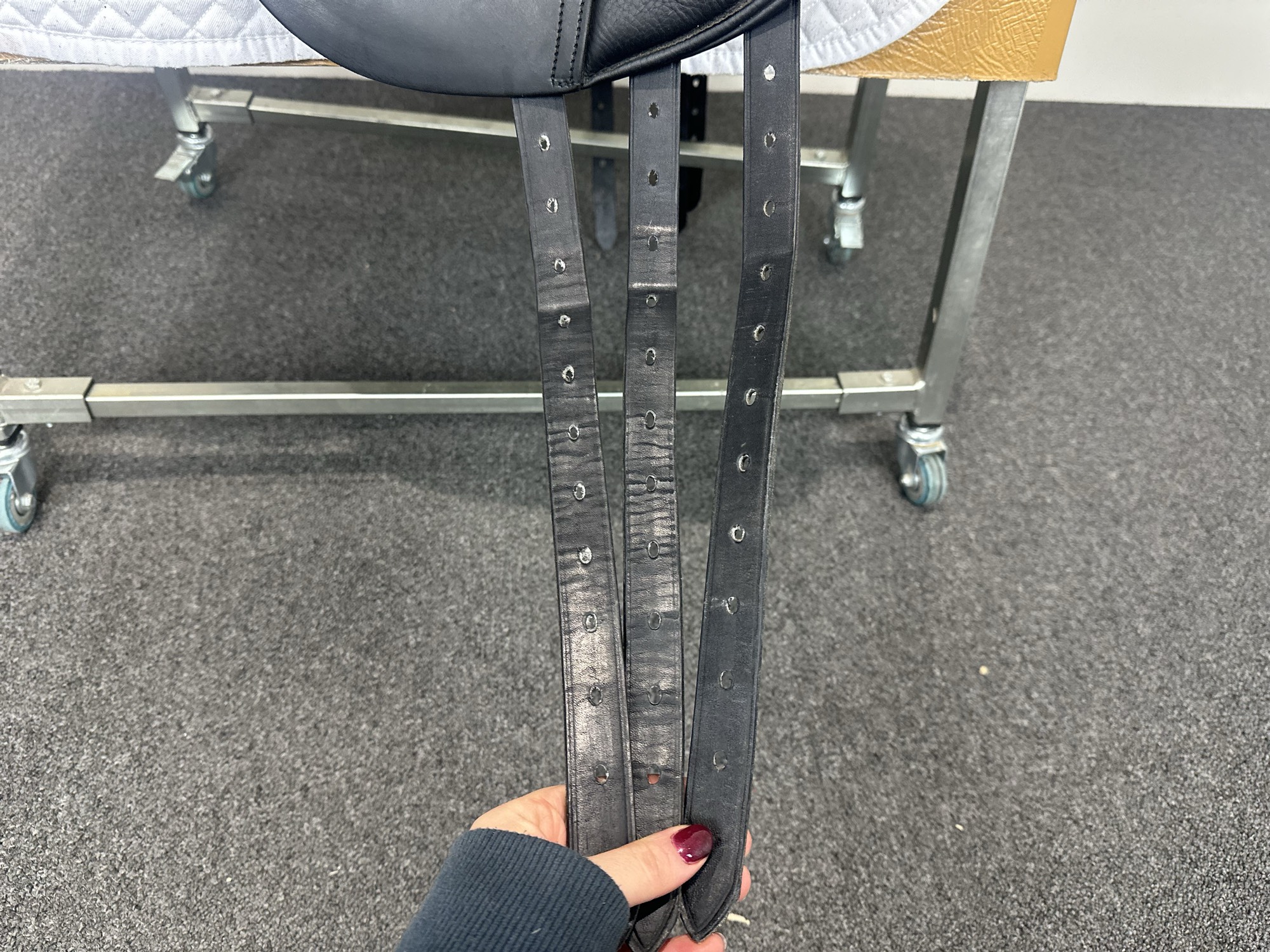 Keep your saddle at room temperature, away from direct heat or damp conditions. Always store it on a saddle rack or stand to preserve its shape.
