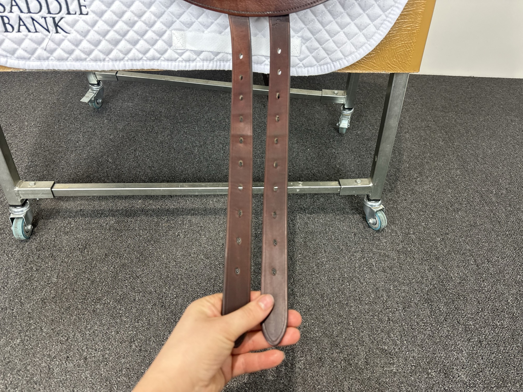 Keep your saddle at room temperature, away from direct heat or damp conditions. Always store it on a saddle rack or stand to preserve its shape.