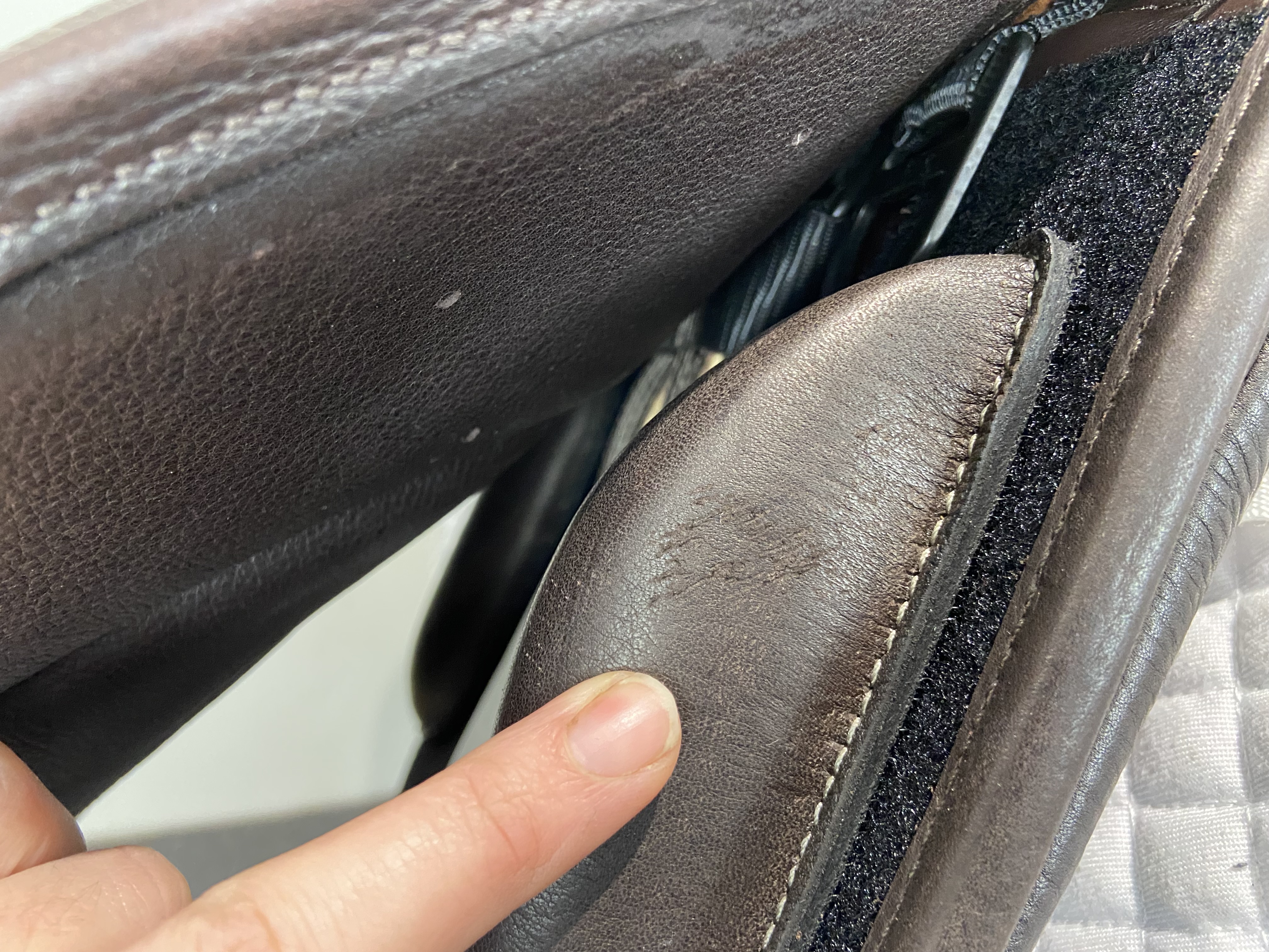 Friction rub areas, such as where the stirrup leathers rub on the Flap.