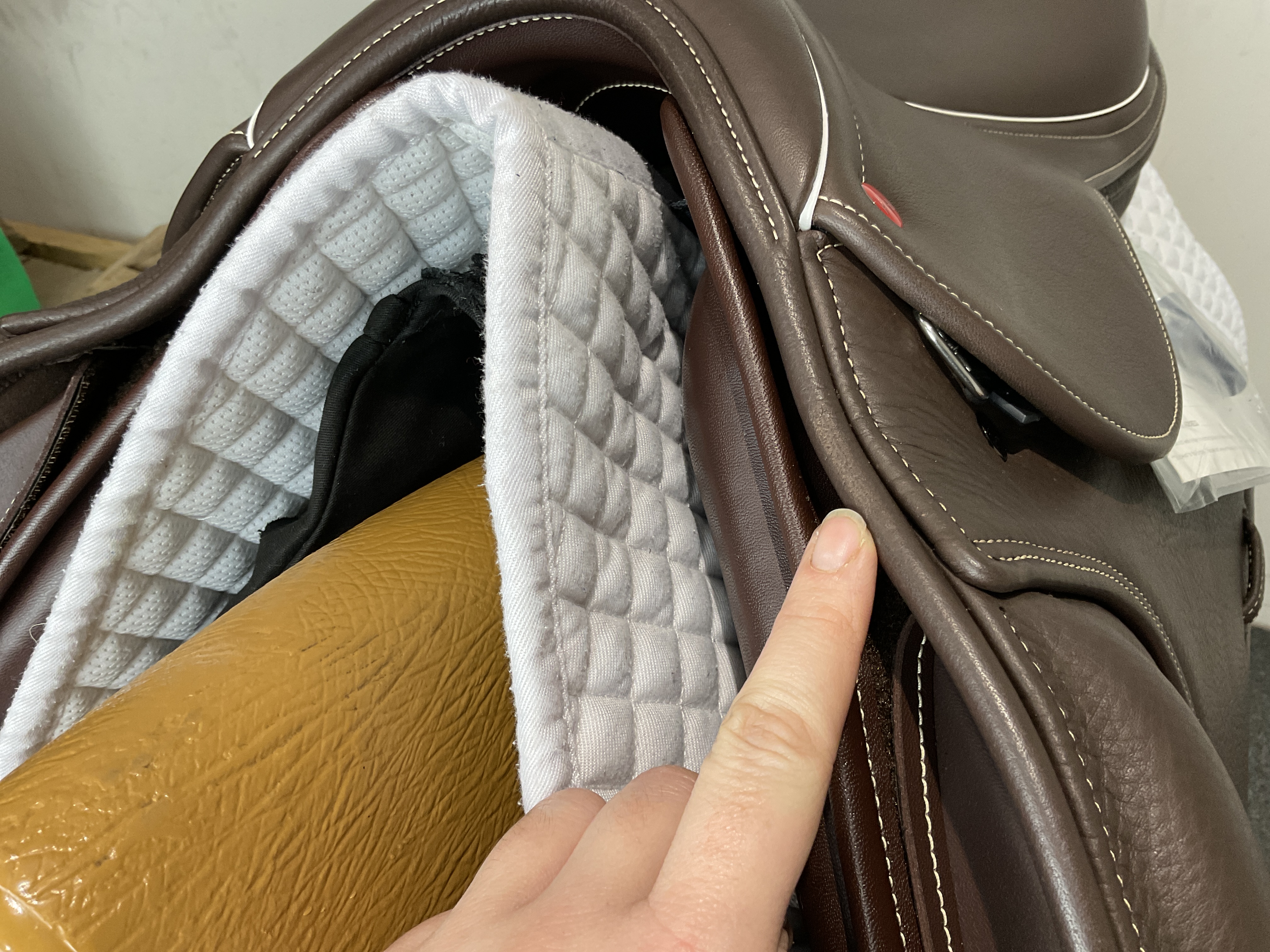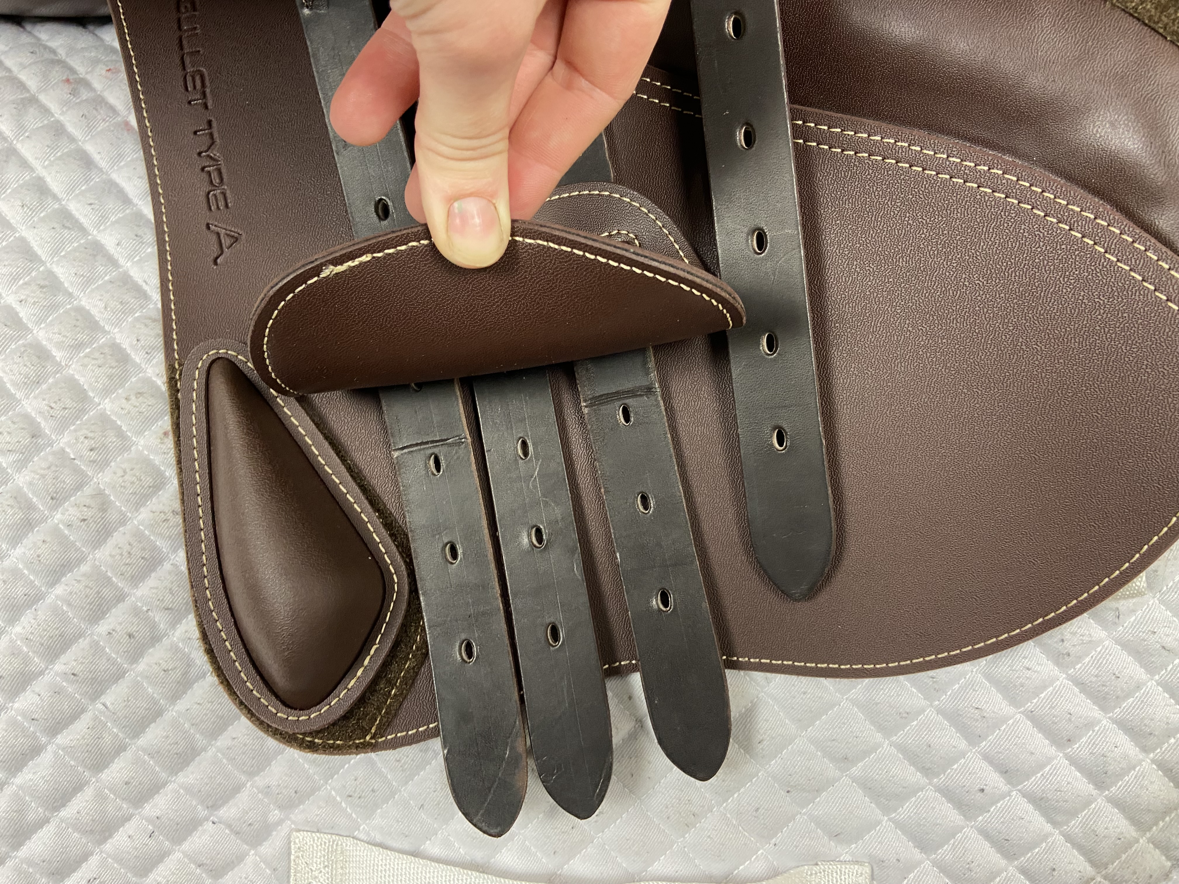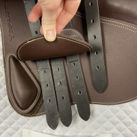 - The leather flap also features a padded section at the skirt to stop creasing and aid comfort