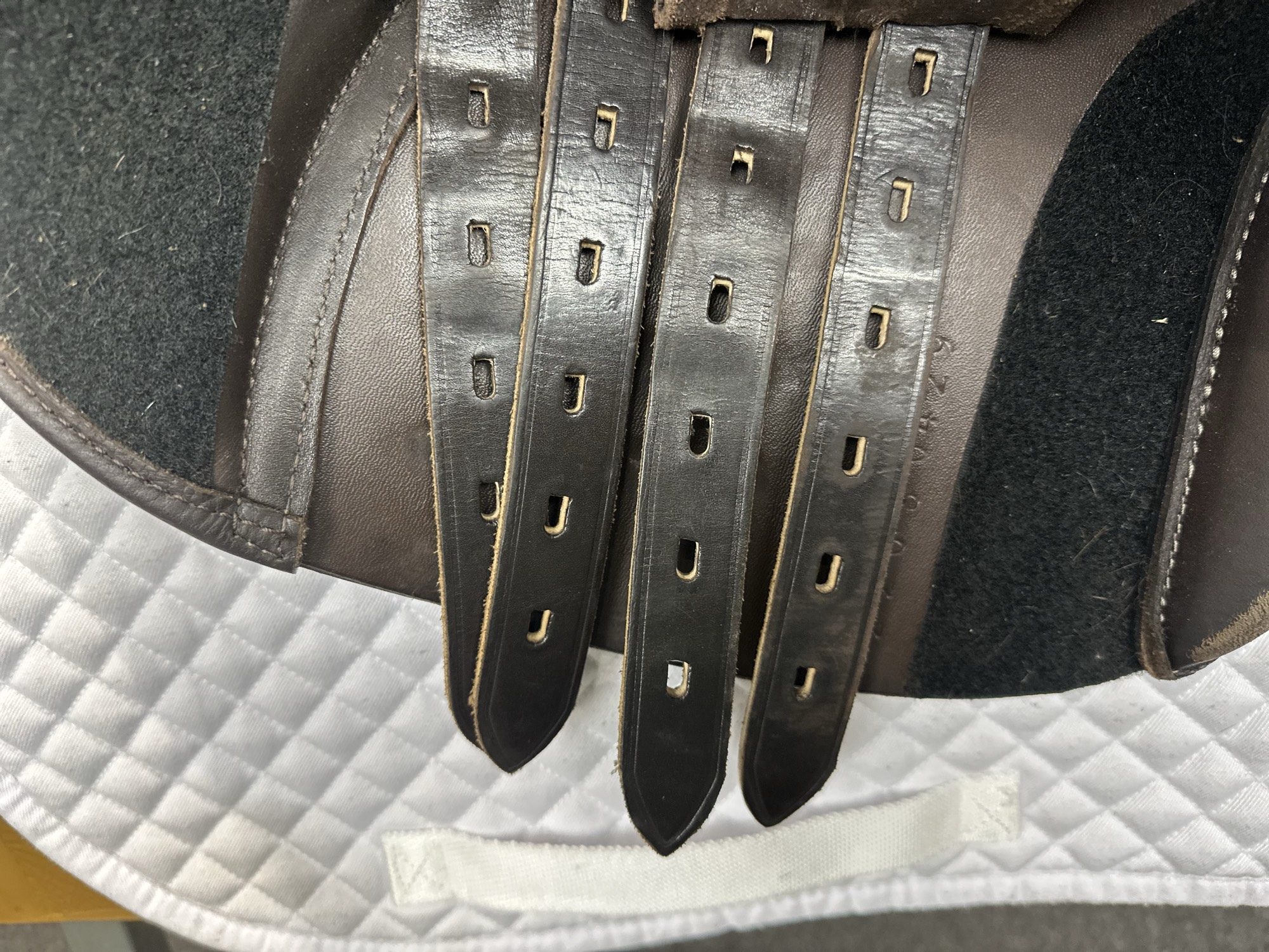 Friction rub areas, such as where the stirrup leathers rub on the Flap.