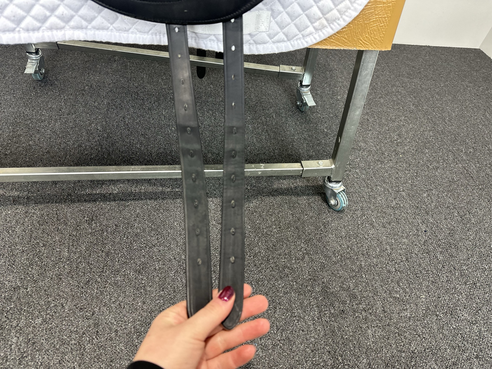 Keep your saddle at room temperature, away from direct heat or damp conditions. Always store it on a saddle rack or stand to preserve its shape.