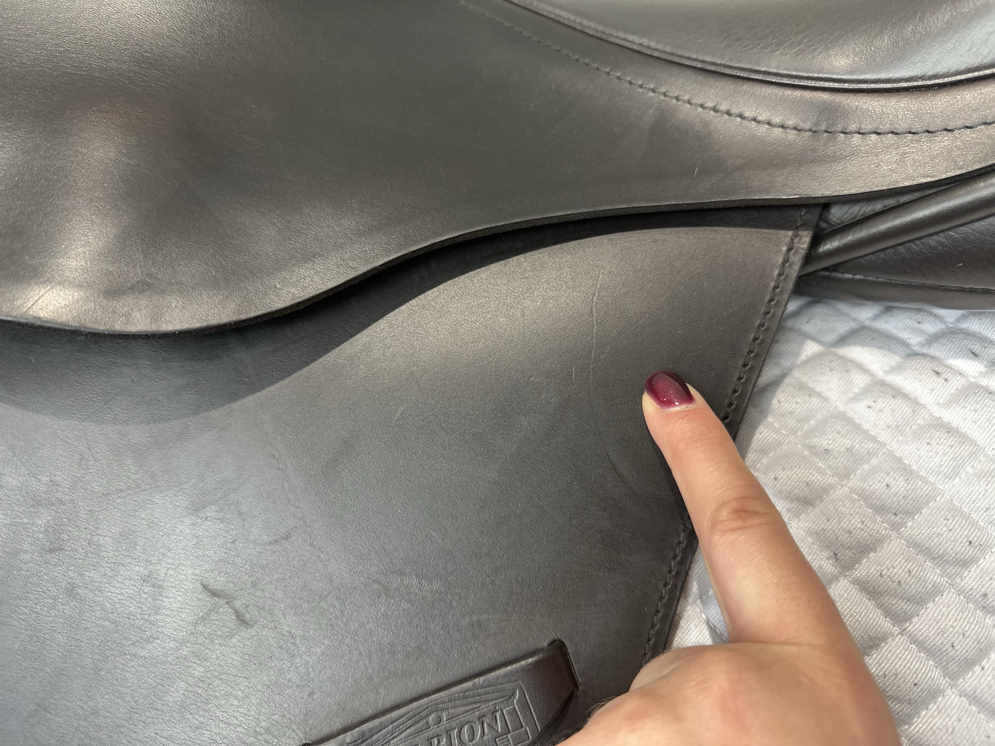 - Ghosted stitching on knee rolls for rider comfort