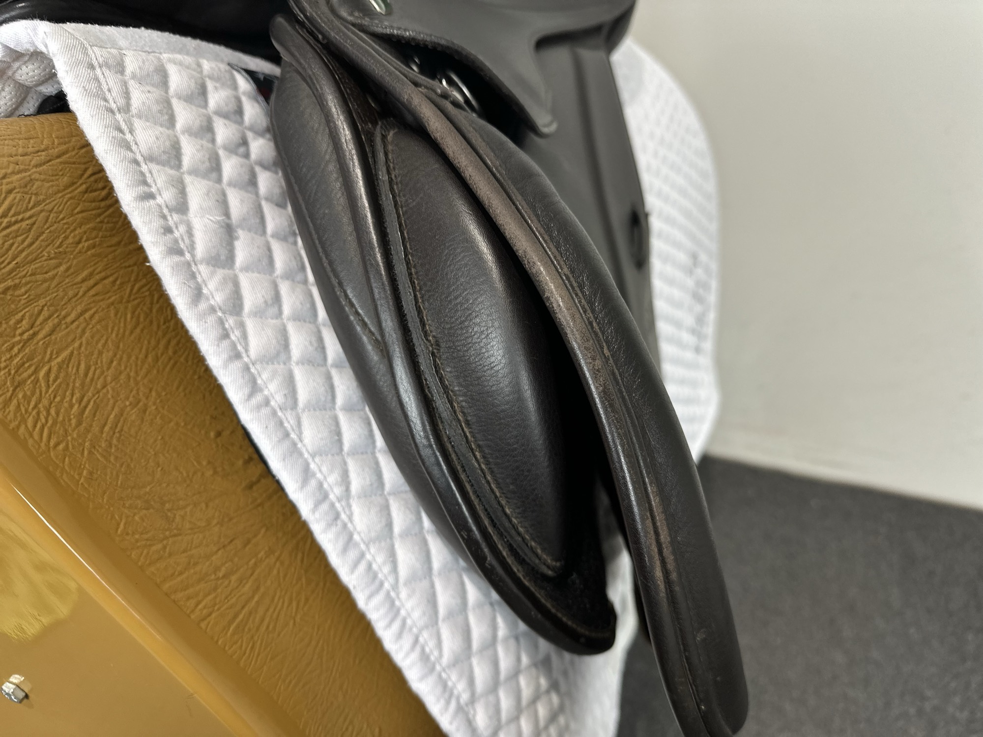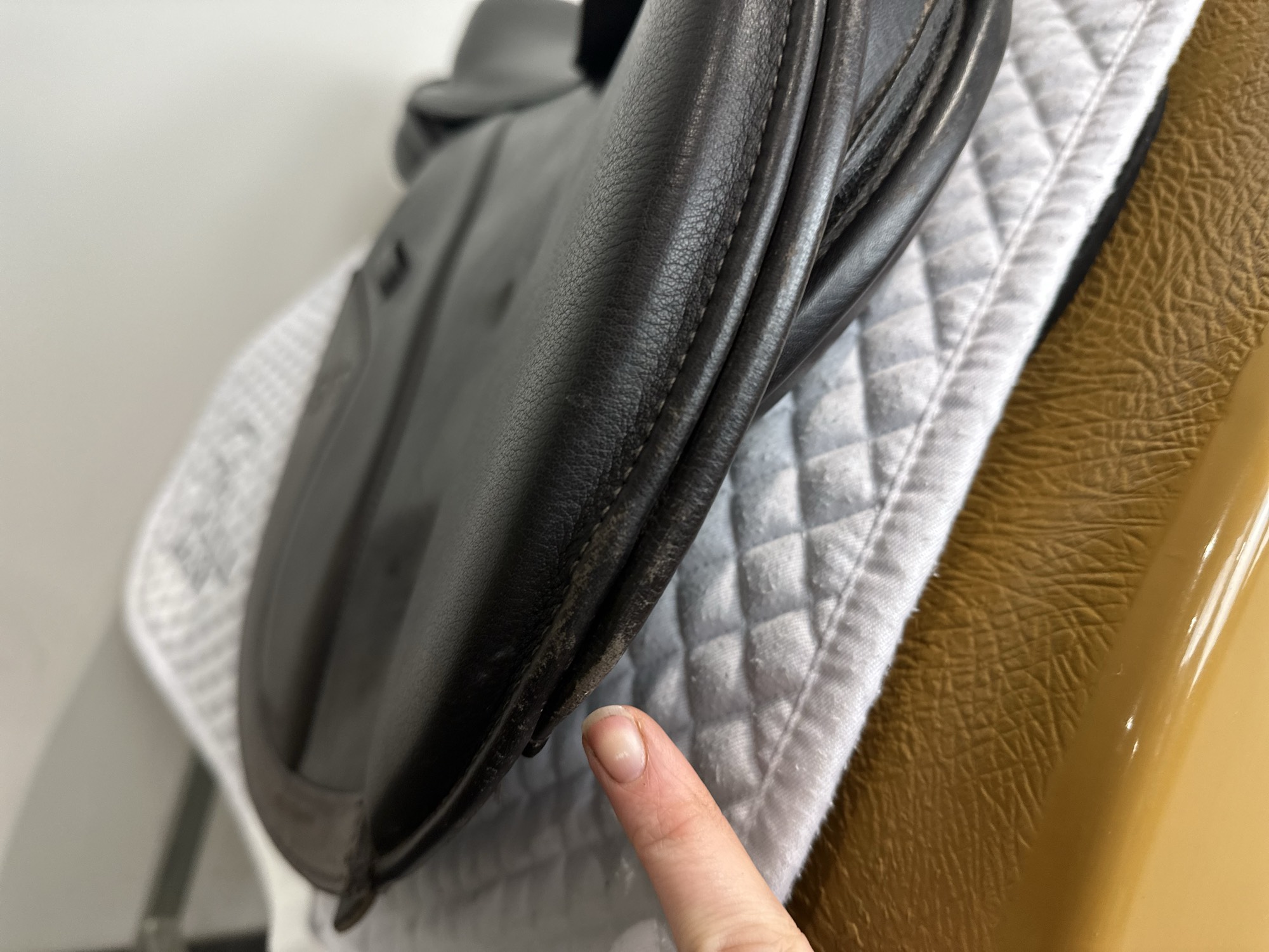Friction rub areas, such as where the stirrup leathers rub on the Flap.