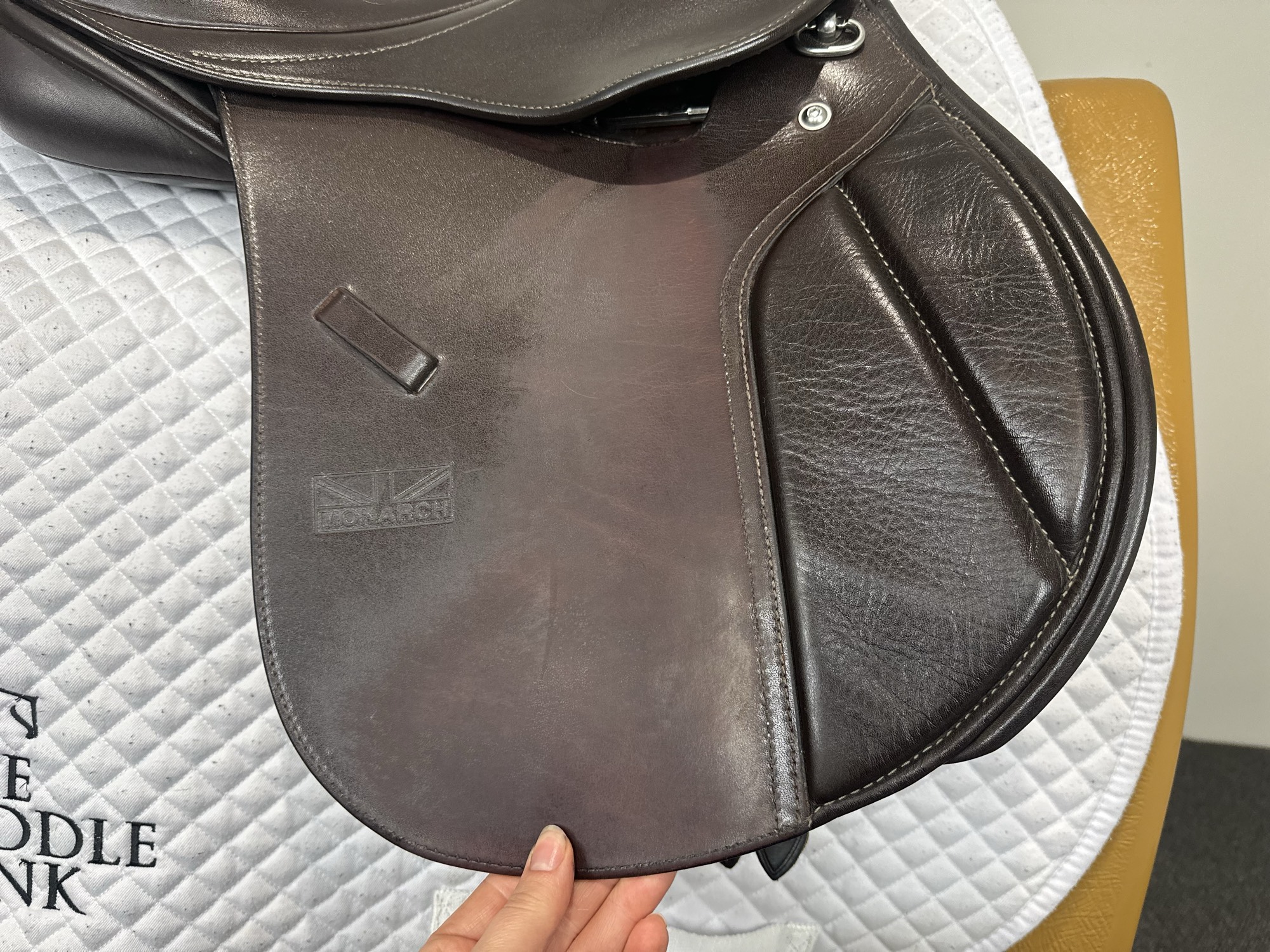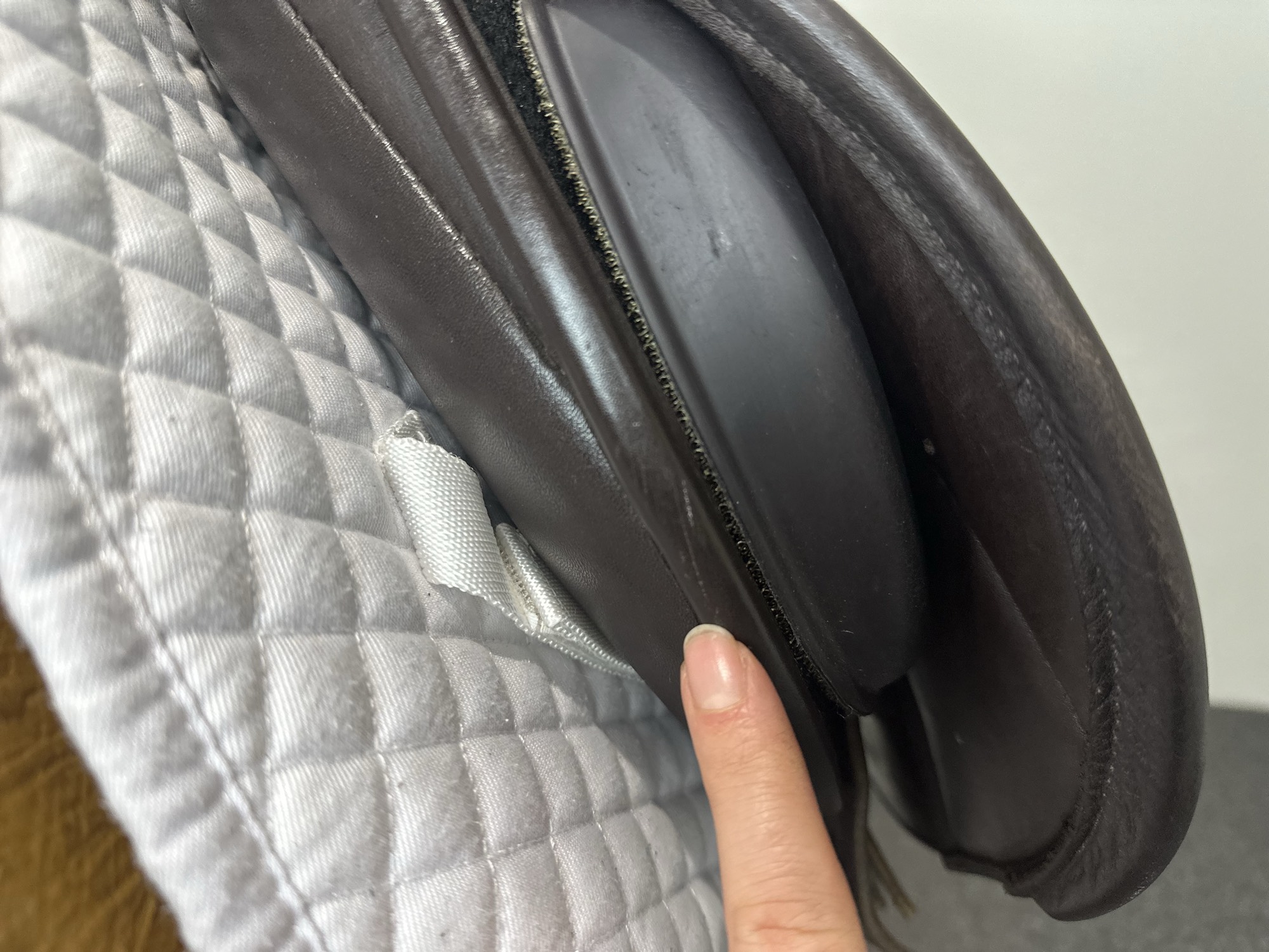 Friction rub areas, such as where the stirrup leathers rub on the Flap.