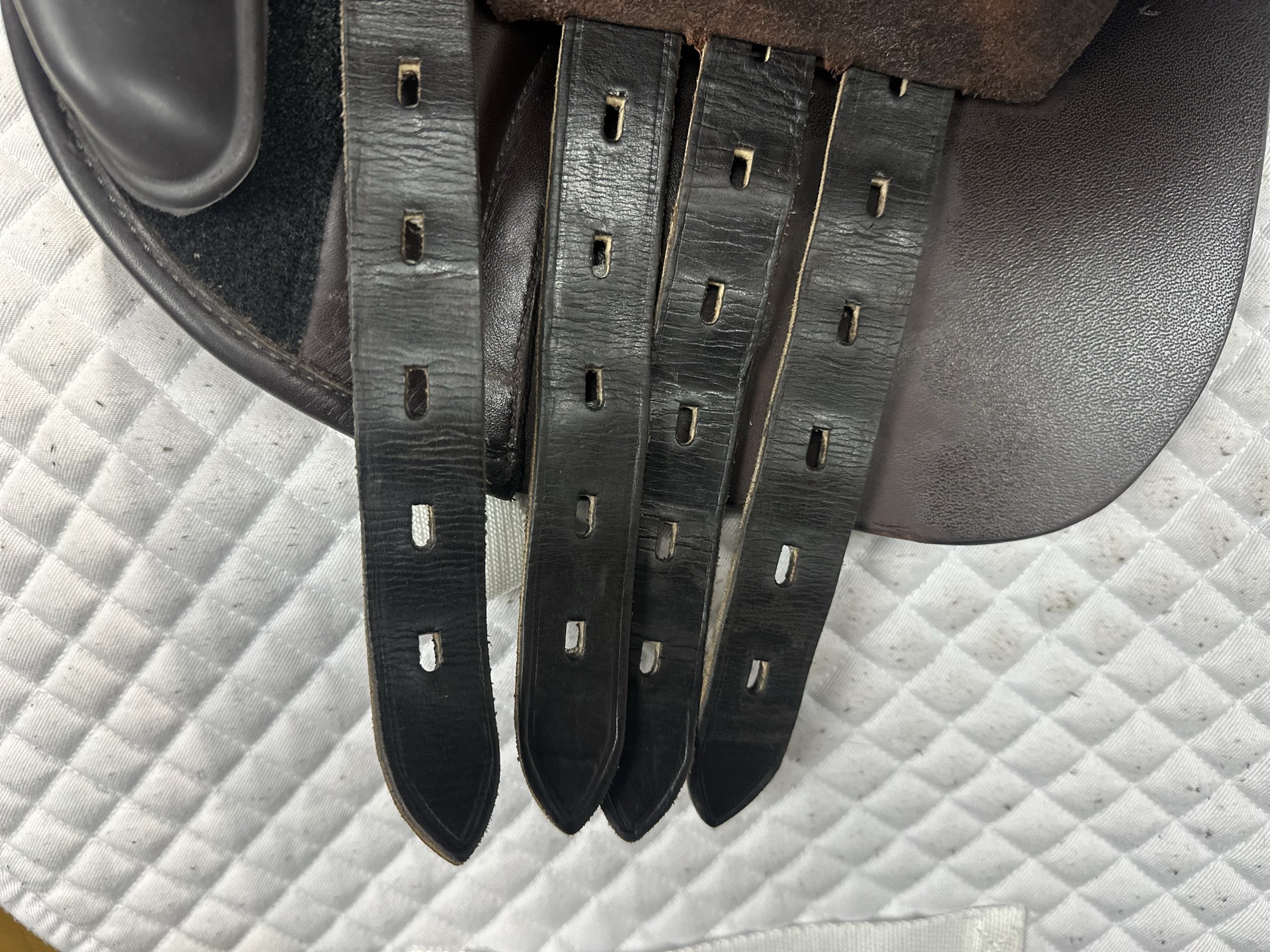 You MUST NOT, use either ‘synthetic‘ stirrup leathers or those with a nylon face, they will act as an abrasive to the surface of the leather.
