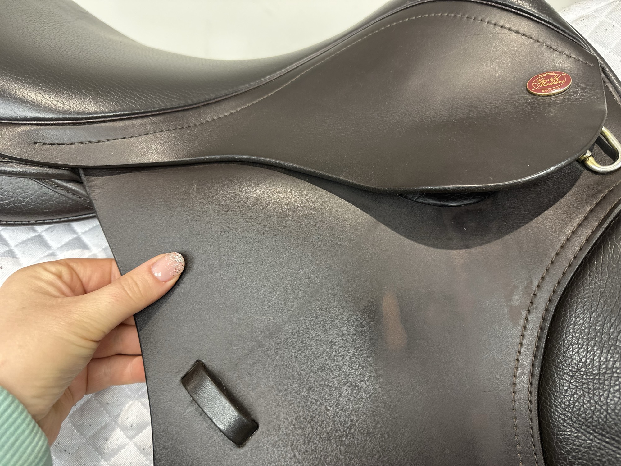 - The flap is cut forward in front of the point of the rider’s knee to accommodate a leggy teenager or adult pony rider.