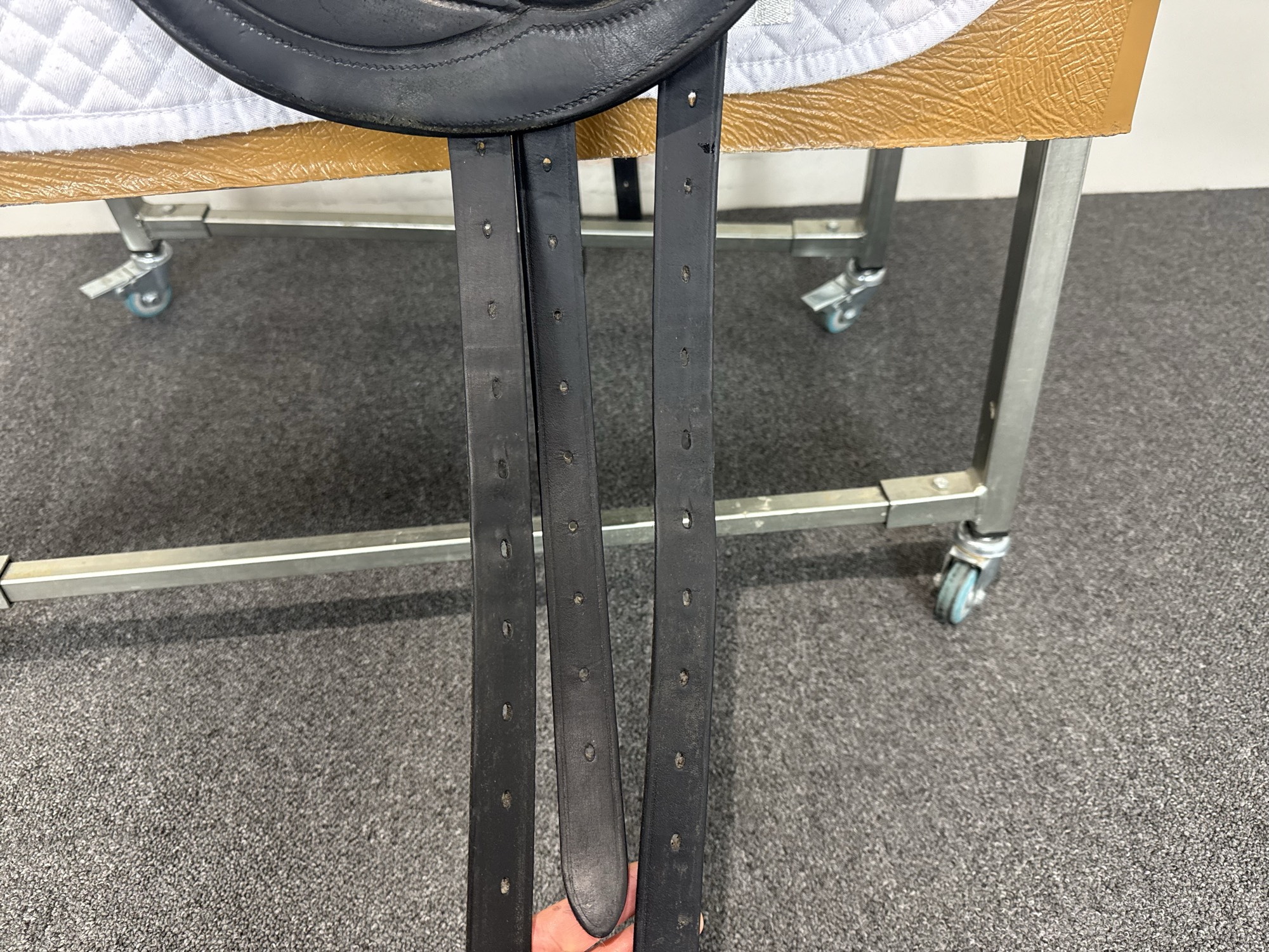 Keep your saddle at room temperature, away from direct heat or damp conditions. Always store it on a saddle rack or stand to preserve its shape.