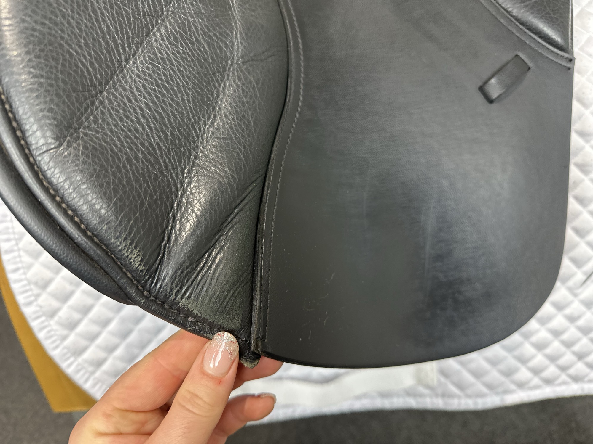 - Ghost stitching on knee roll for rider comfort