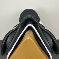 The Emporio Jump features a straighter tree and a longer seat, providing extra room and comfort for the rider. It is ideal for flatter, lower-withered horses, offering a stable fit that accommodates a straighter back profile while maintaining close contact.
