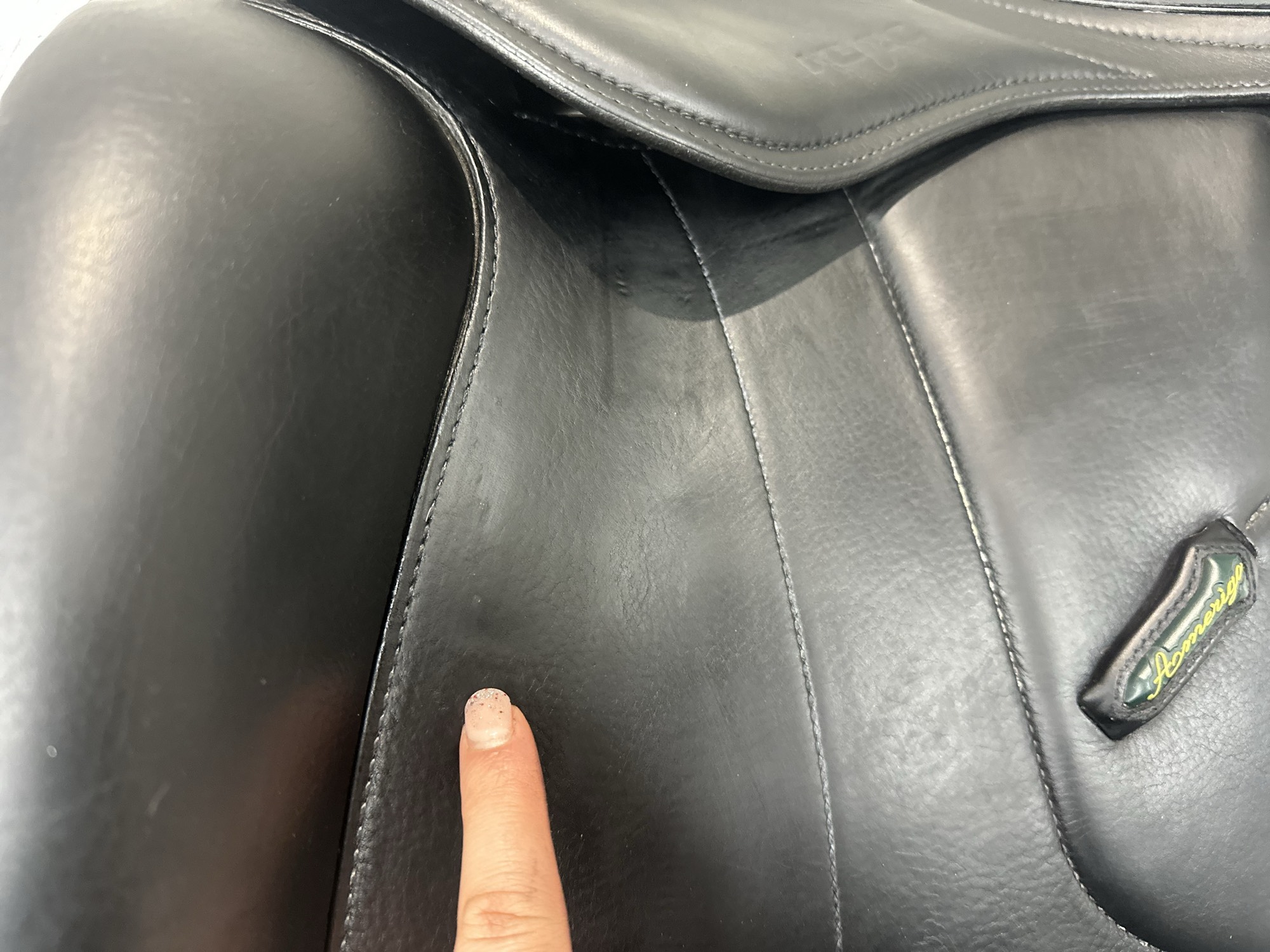 - Calfskin padded seat and knee rolls for added comfort