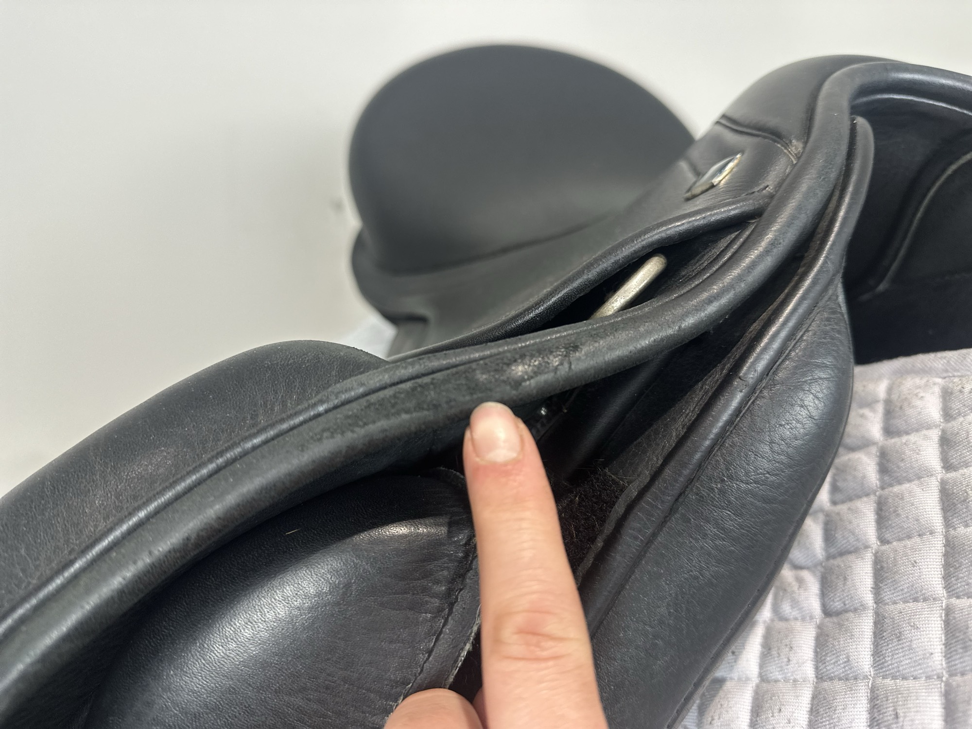 Friction rub areas, such as where the stirrup leathers rub on the Flap.