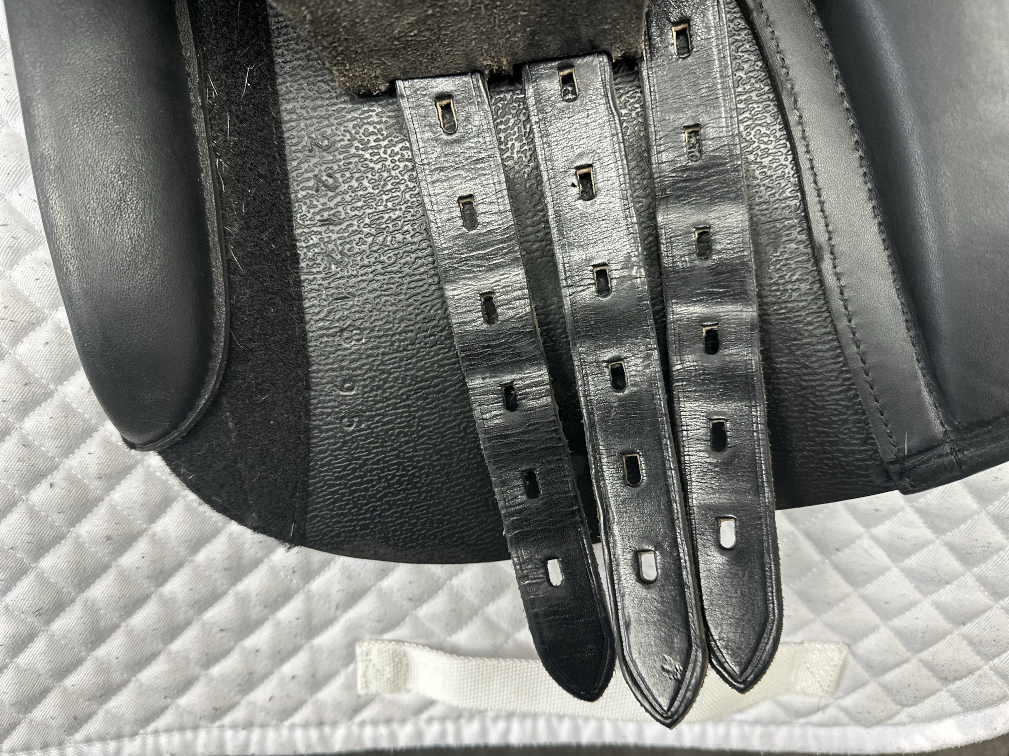 Friction rub areas, such as where the stirrup leathers rub on the Flap.