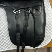 It features a movable girth strap that can be moved to the point strap ring if required, which can help achieve a better fit.